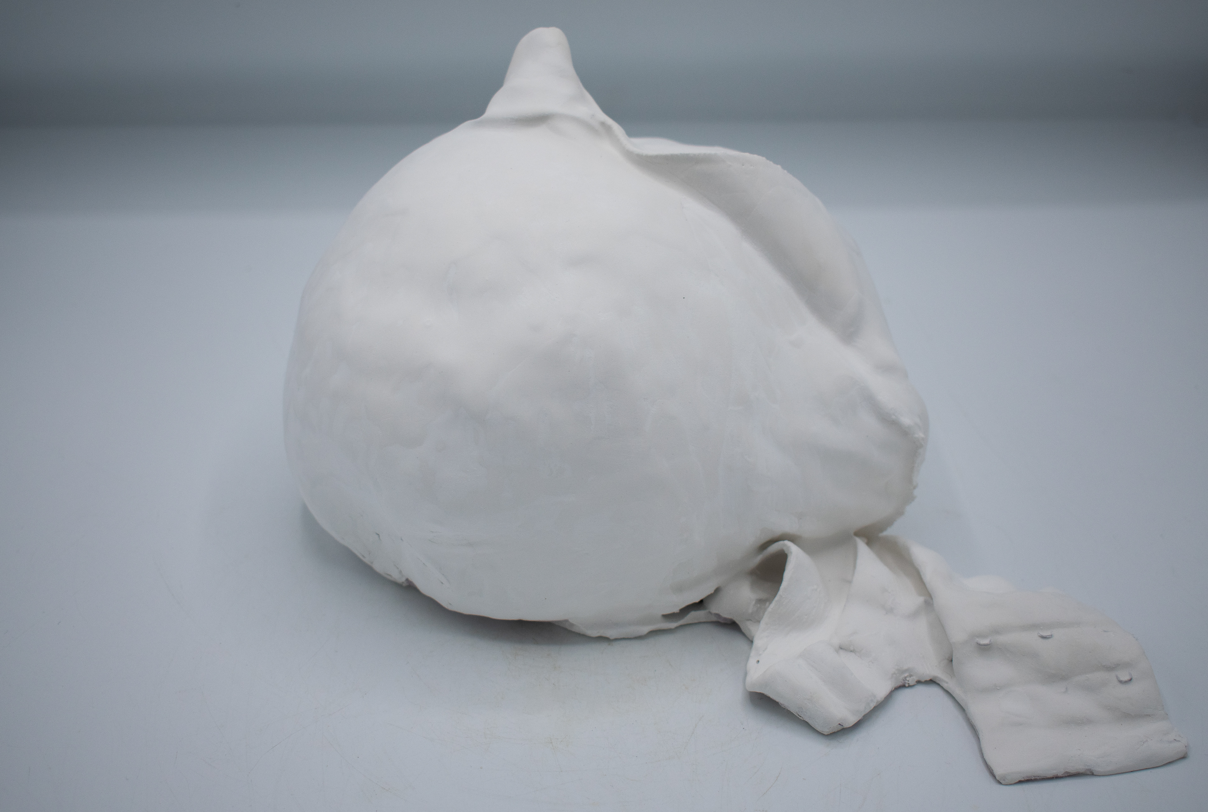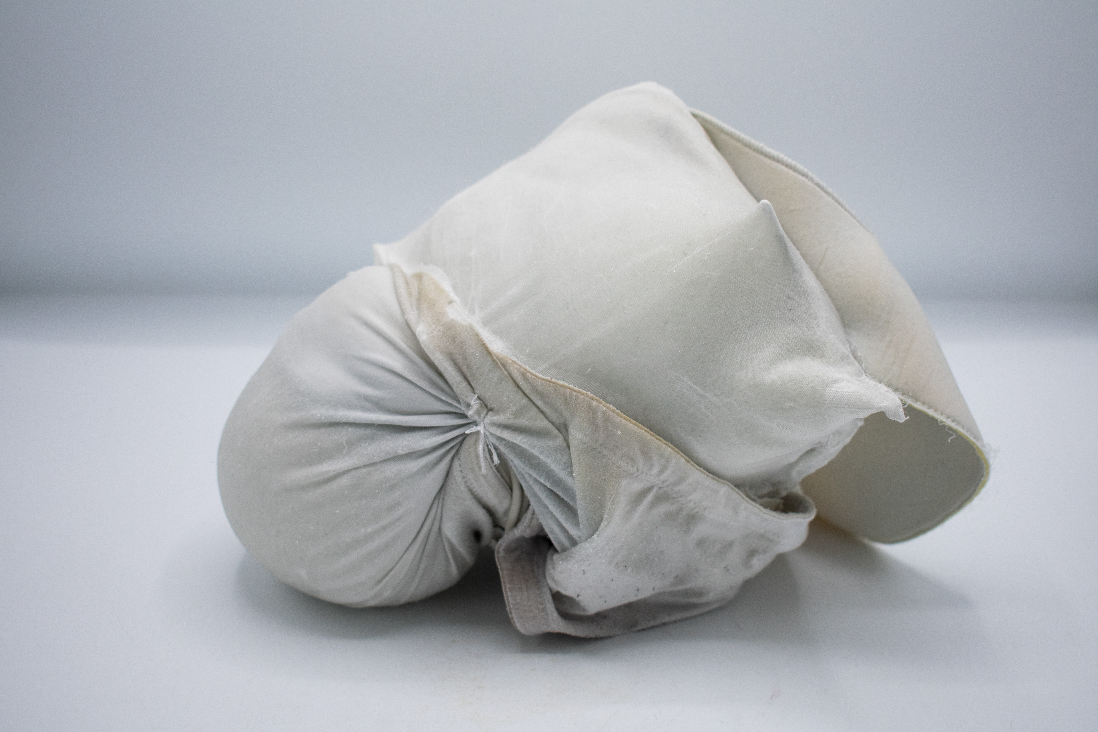 'Breast form', 2025, plaster, bra, polyfil, 7x13x9”